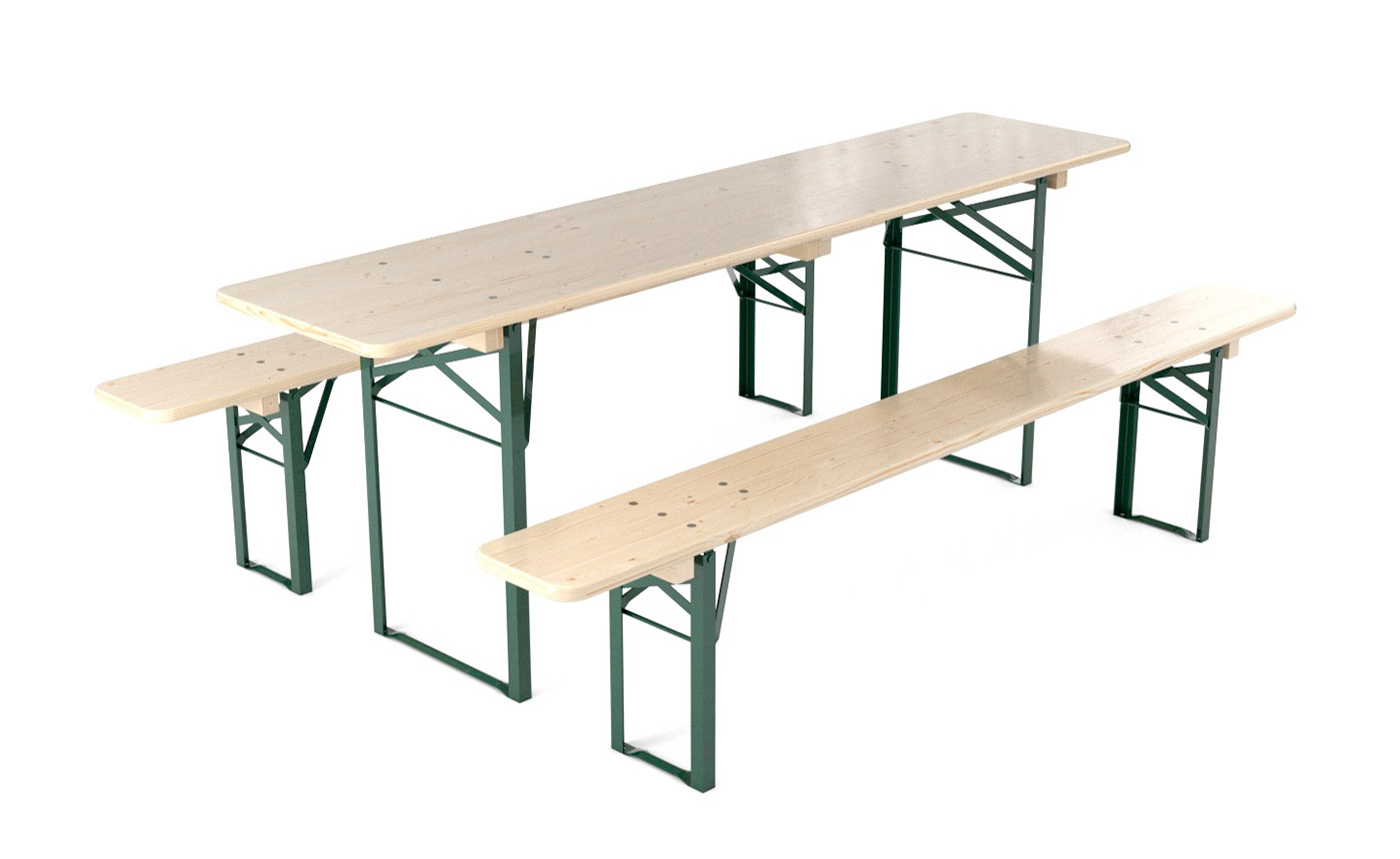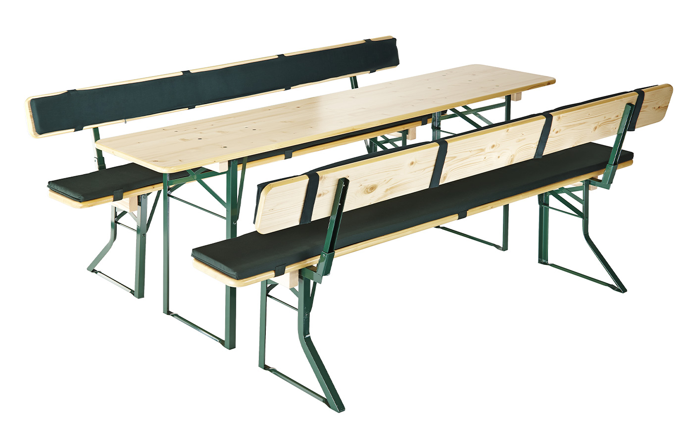 Die traditionelle Festzeltgarnitur ist bei großen Veranstaltungen, Festen oder Geburtstagen nicht mehr wegzudenken. Kein anderes Möbelstück ist so schnell aufgebaut, bietet Platz für viele Personen und ist am Schluss in Sekunden wieder verstaut.