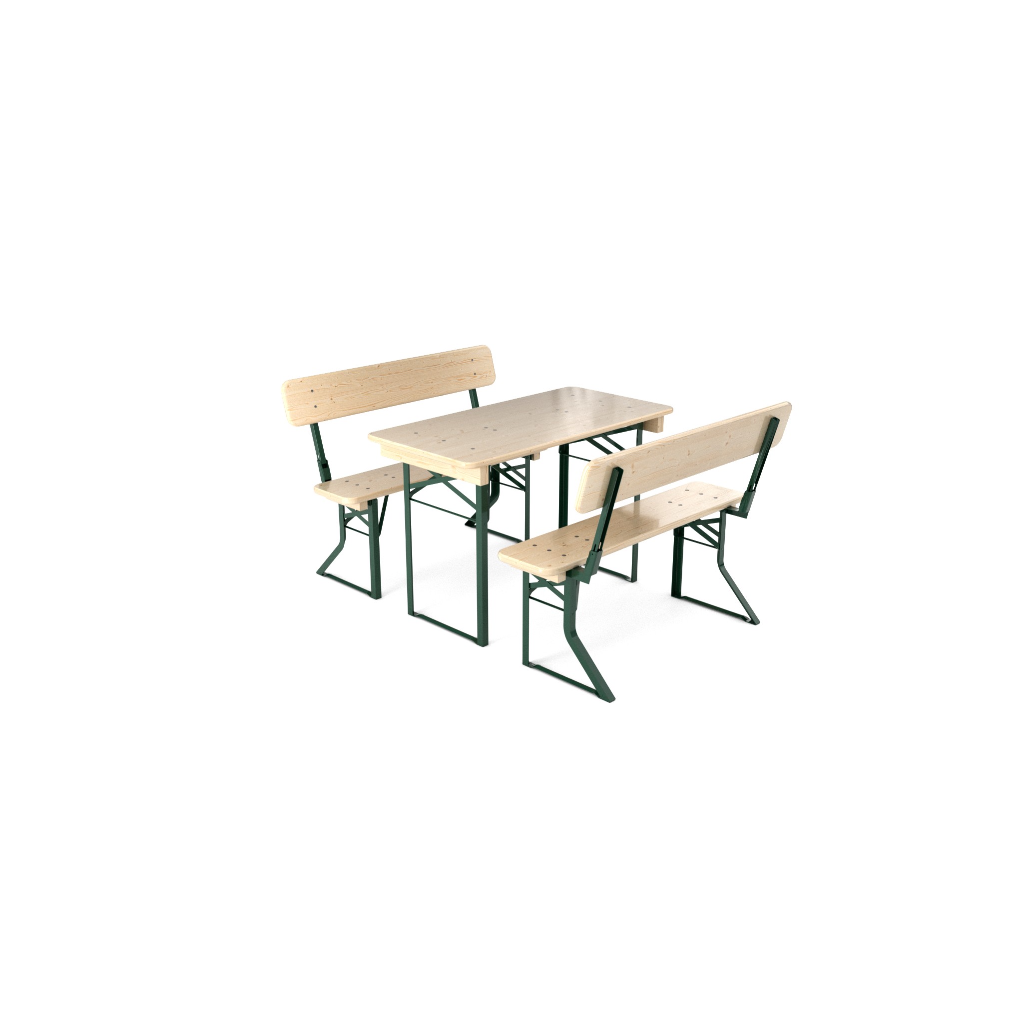 Original GWW-Festzeltgarnituren werden aus ausgewähltem nordischem Fichtenholz gefertigt mit 24 mm starken Tischplatten und besonders robusten 28 mm Bankplatten mit durchgängig geschweißten Gestellen aus stabilem Winkelstahl kombiniert – für maximale Stabilität und jahrelange Nutzung.