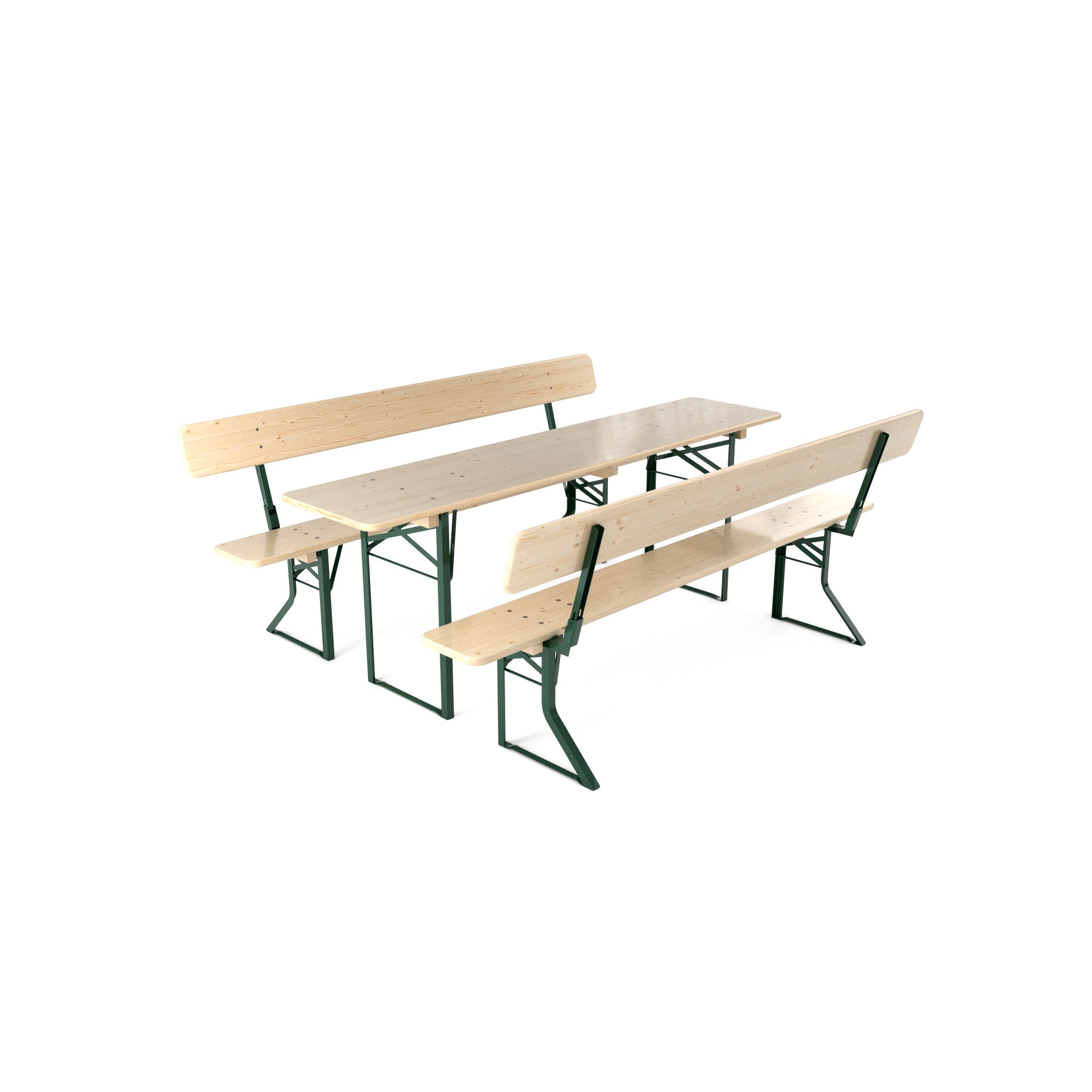 Original GWW-Festzeltgarnituren werden aus ausgewähltem nordischem Fichtenholz gefertigt mit 24 mm starken Tischplatten und besonders robusten 28 mm Bankplatten mit durchgängig geschweißten Gestellen aus stabilem Winkelstahl kombiniert – für maximale Stabilität und jahrelange Nutzung.