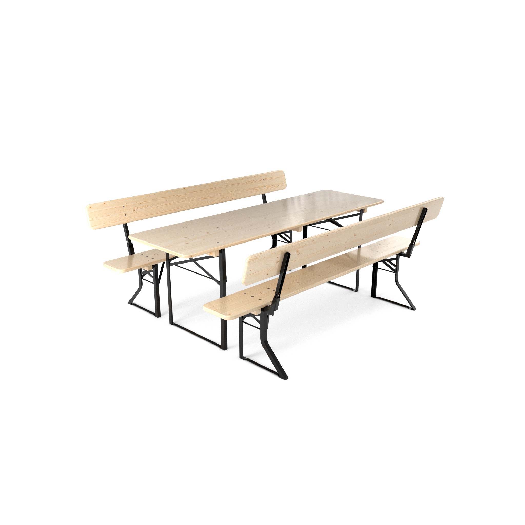 Original GWW-Festzeltgarnituren werden aus ausgewähltem nordischem Fichtenholz gefertigt mit 24 mm starken Tischplatten und besonders robusten 28 mm Bankplatten mit durchgängig geschweißten Gestellen aus stabilem Winkelstahl kombiniert – für maximale Stabilität und jahrelange Nutzung.