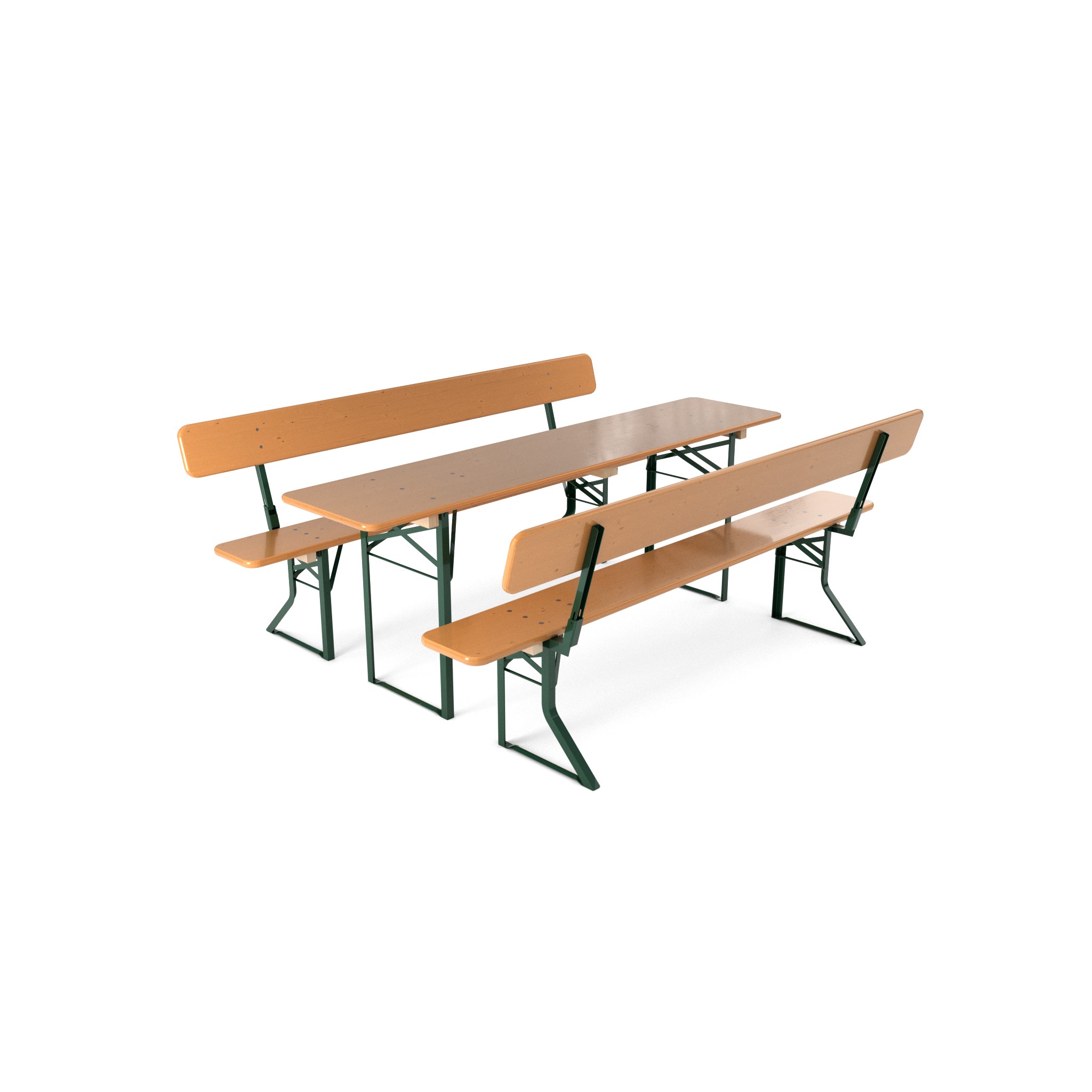 Original GWW-Festzeltgarnituren werden aus ausgewähltem nordischem Fichtenholz gefertigt mit 24 mm starken Tischplatten und besonders robusten 28 mm Bankplatten mit durchgängig geschweißten Gestellen aus stabilem Winkelstahl kombiniert – für maximale Stabilität und jahrelange Nutzung.