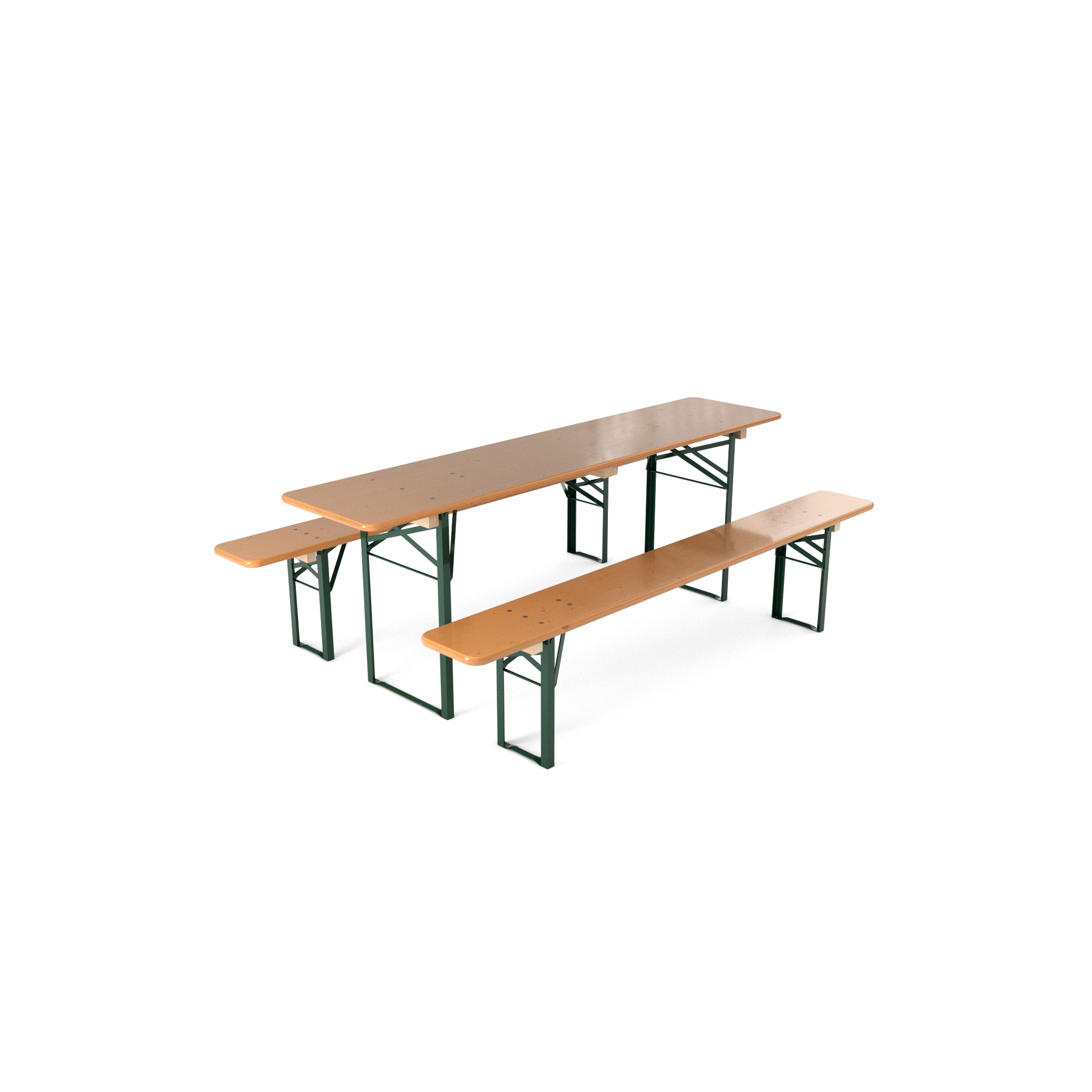 Original GWW-Festzeltgarnituren werden aus ausgewähltem nordischem Fichtenholz gefertigt mit 24 mm starken Tischplatten und besonders robusten 28 mm Bankplatten mit durchgängig geschweißten Gestellen aus stabilem Winkelstahl kombiniert – für maximale Stabilität und jahrelange Nutzung.