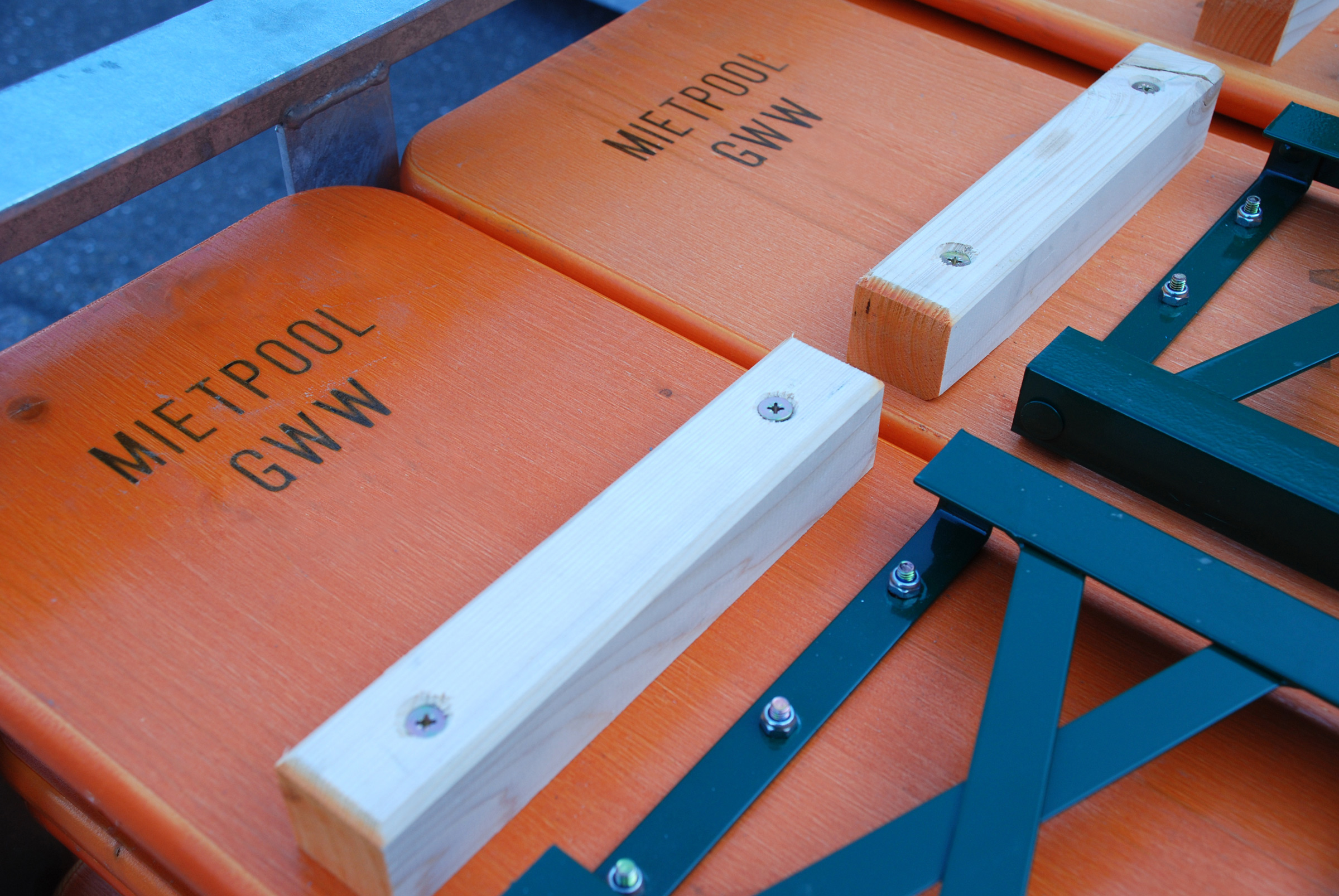 Jede Feier hinterlässt Spuren – in Erinnerungen, in Gesprächen und manchmal auch auf Ihrer Garnitur. Damit Sie Ihre Tische und Bänke nach einem Fest oder einer Veranstaltung mühelos auseinanderhalten können, bieten wir Ihnen die Möglichkeit, sie mit einem individuellem Einbrand zu versehen.